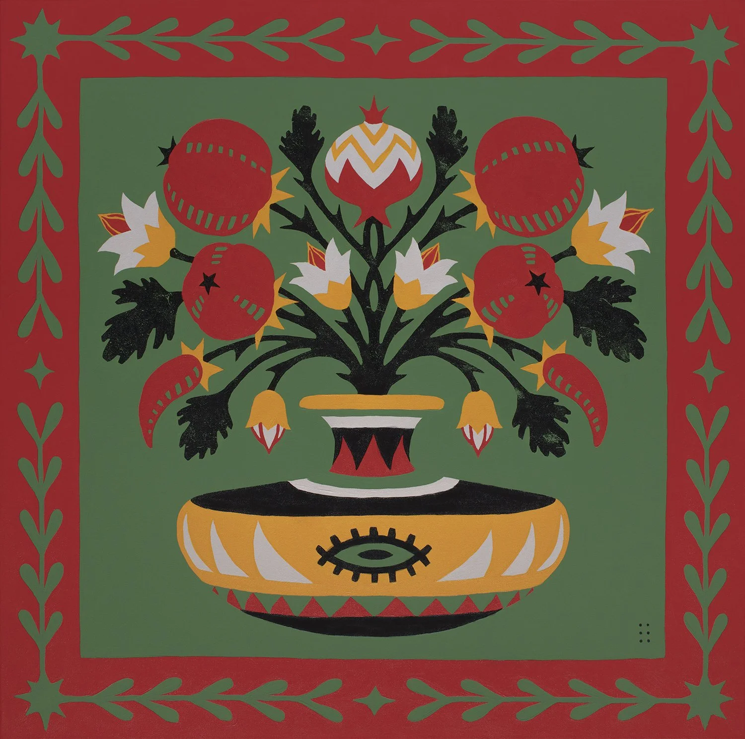 "Pico de Gallo Verde" - Acrylic on canvas, 1x1m, 2024.